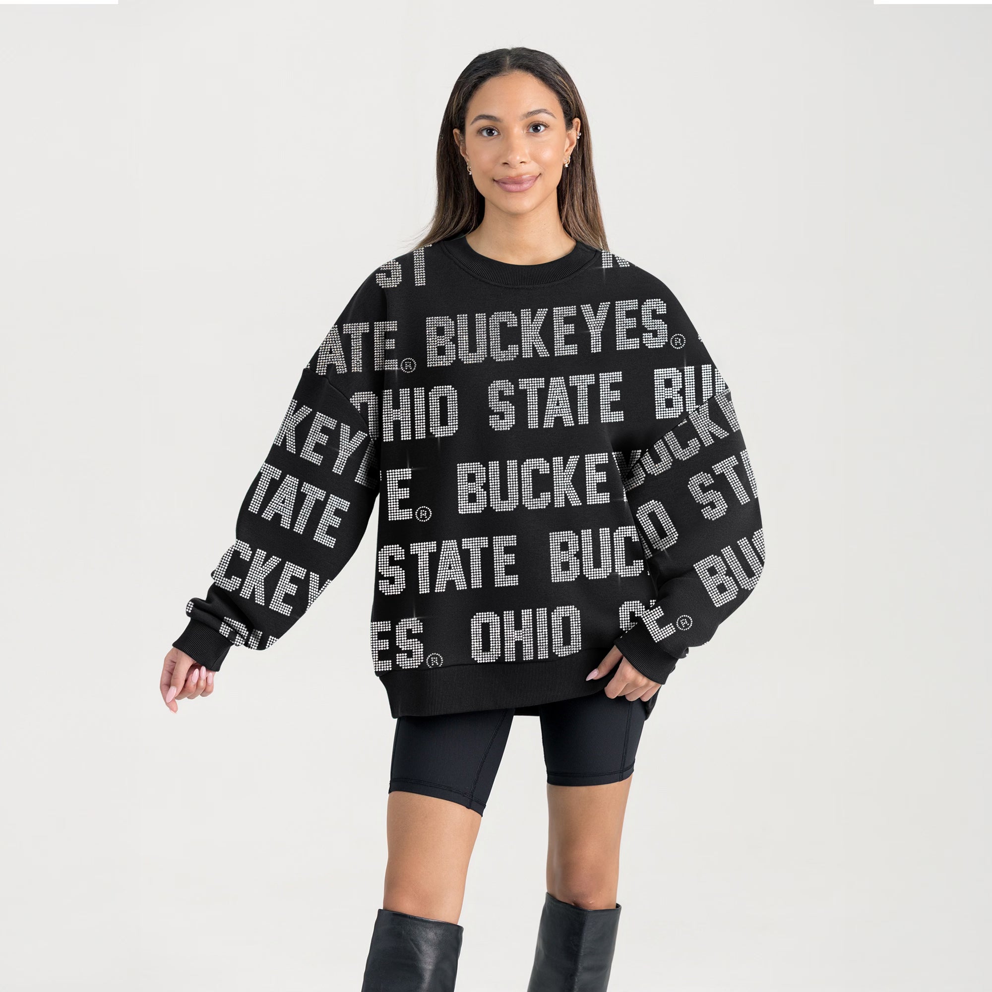 OHIO STATE BUCKEYES DROP SHOULDER CREWNECK PULLOVER WITH RHINESTONES