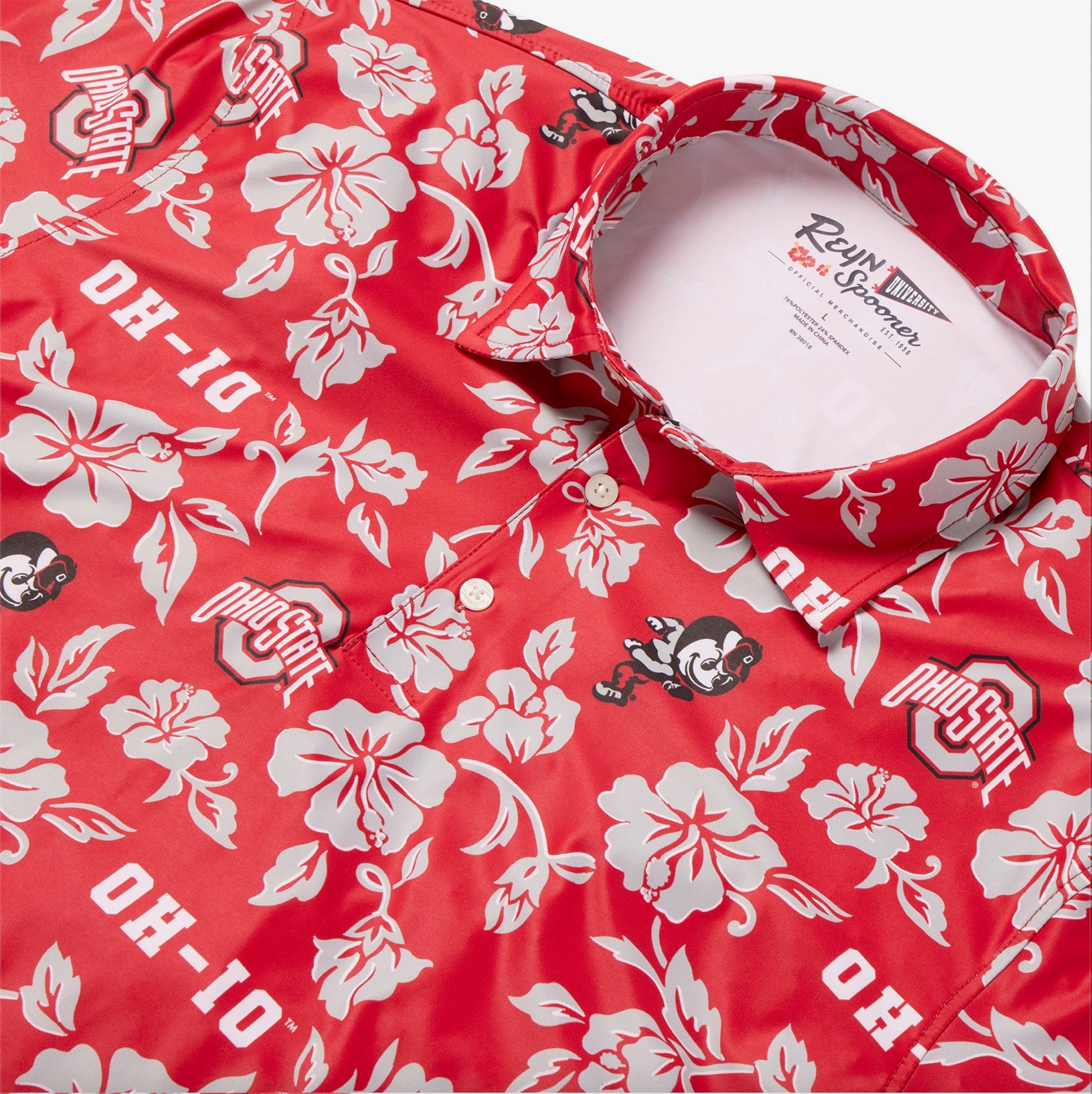 Step up your game-day look with the Ohio State Buckeyes Red Spooner Performance Polo in Scarlet. Made from a premium blend of 92% polyester and 8% spandex, this polo delivers lightweight comfort with just the right amount of stretch. The breathable, moisture-wicking fabric keeps you cool, while the classic three-button placket and iconic Ohio State logo add a polished finish. Perfect for tailgates, golf outings, or everyday wear, it’s the ultimate performance polo for Buckeye fans.